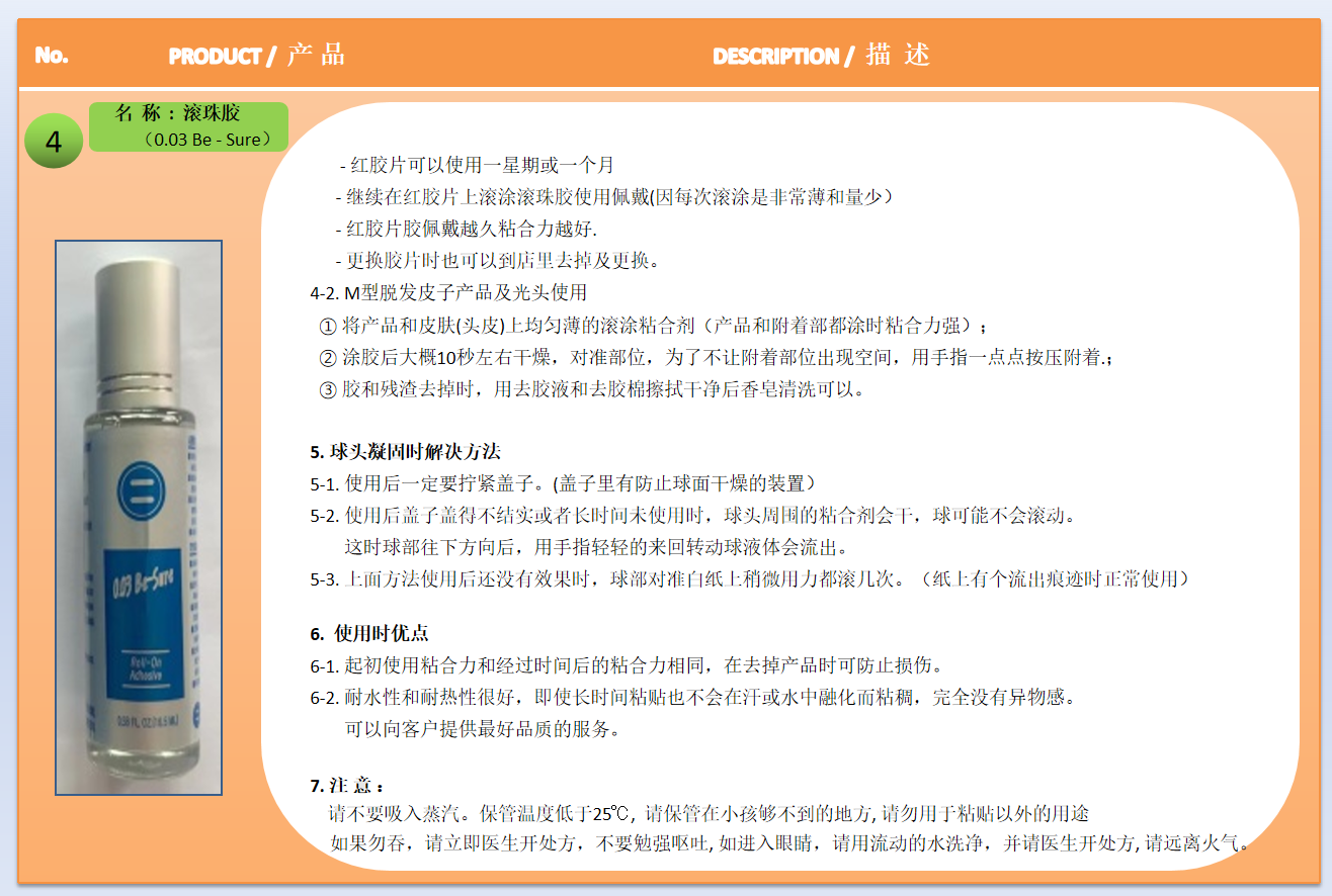 我们跟浙江大学博士技术研发检测实验室合作,我们可以开发各种性能的假发胶水,适合各种假发配戴材质(比如PU、NPU、加纱PU、